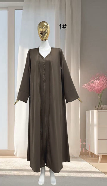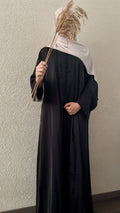 Prachtige abayaset bestaande uit mouwloze onderjurk en soepele abaya. De set is mooi afgewerkt met Marokkaanse sfifa.