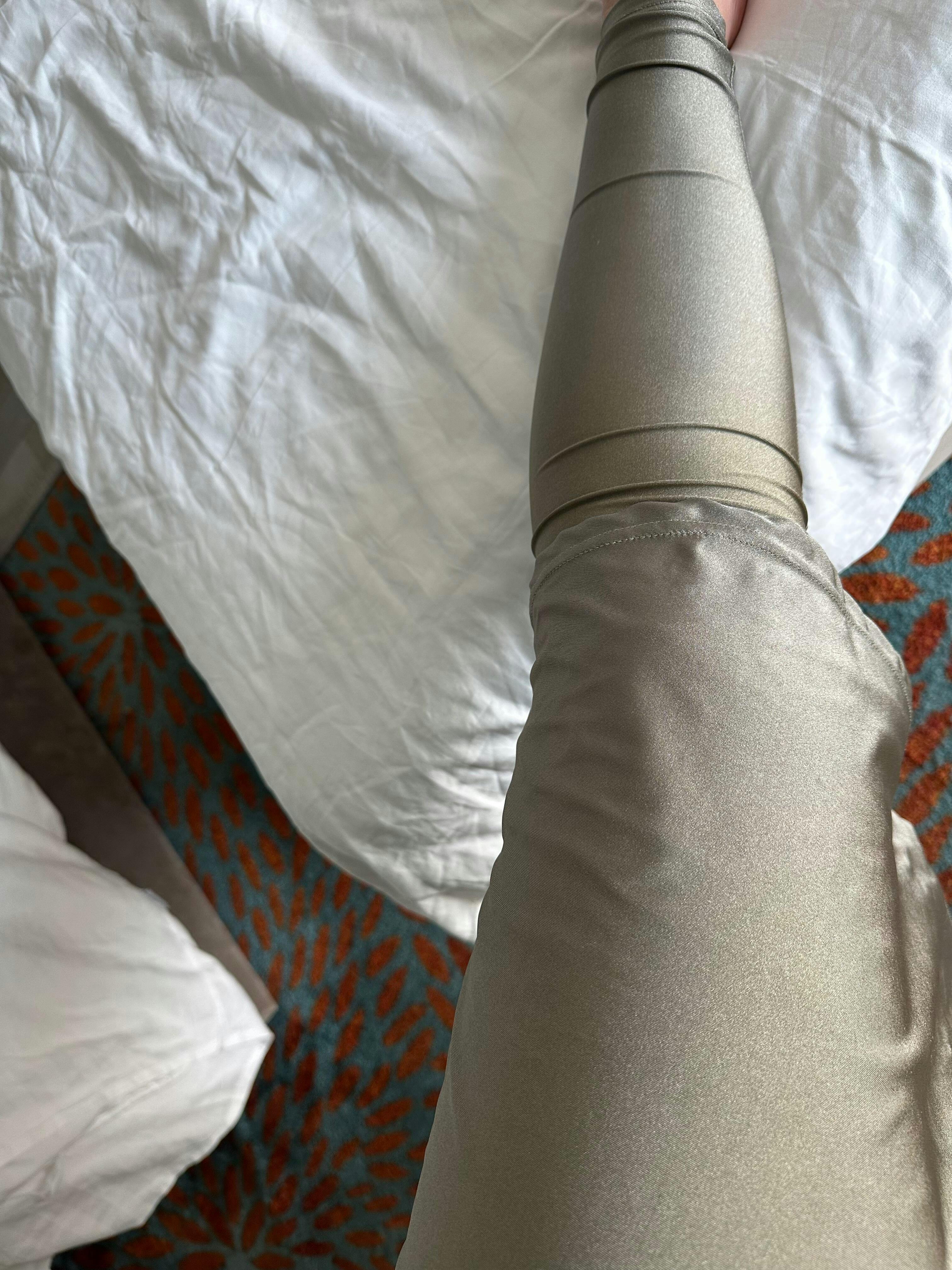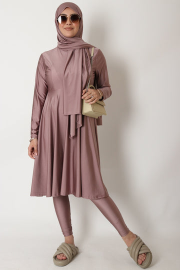 Sie können die Burkini-Leggings mit Schnüren am Kleid befestigen, damit sie im Wasser nicht aufsteigen.