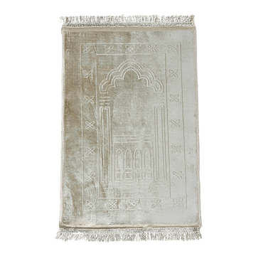 Dieser Gebetsteppich ist in mehreren schönen Farben erhältlich, aber jeder Gebetsteppich enthält nur eine Farbe und ein unaufdringliches Motiv, um sicherzustellen, dass die betende Person nicht abgelenkt wird.