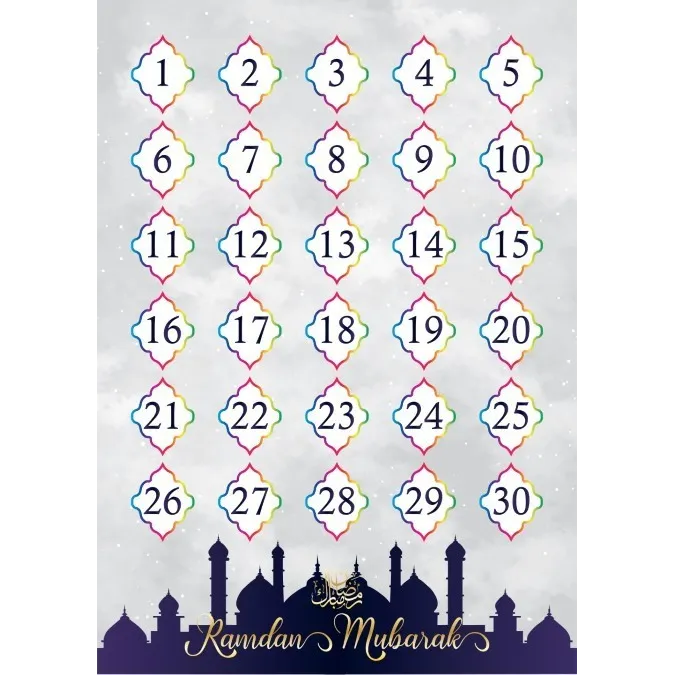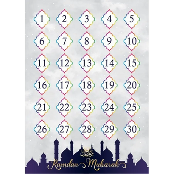 Prachtige aftelposter om samen met de kinderen de dagen van de Ramadan af te tellen naar Eid. Kies zelf het design dat u wilt, de poster is dubbelzijdig bedrukt!