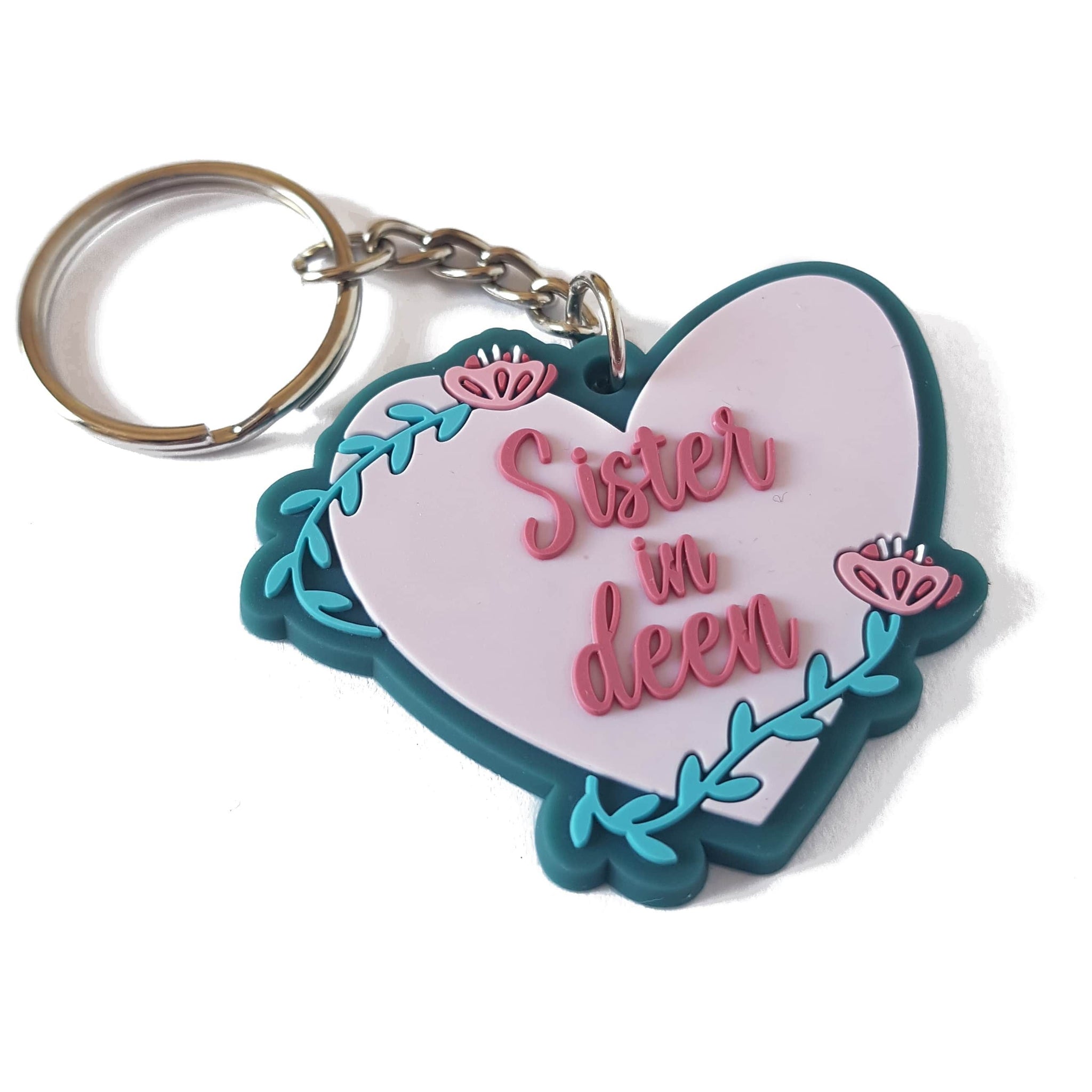 Geschenktipp! Dieser schöne islamische Schlüsselanhänger hat die Form eines Herzens mit dem folgenden schönen Text: „Sister in Deen“. Ob Sie eine neue muslimische Frau in der Ummah oder der Gemeinschaft willkommen heißen möchten, Ihrer kleinen muslimischen Schwester das Gefühl geben möchten, dass sie auch dazugehört, oder einfach diesen Schlüsselanhänger einer lieben Schwester oder Freundin schenken möchten: diesen Schlüssel Ring ist immer schön zu verschenken.
