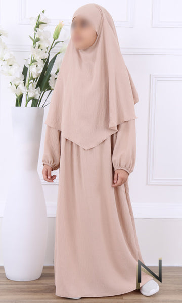 Made of soft Jazz fabric. The set consists of an abaya and khimaar in the same colour.