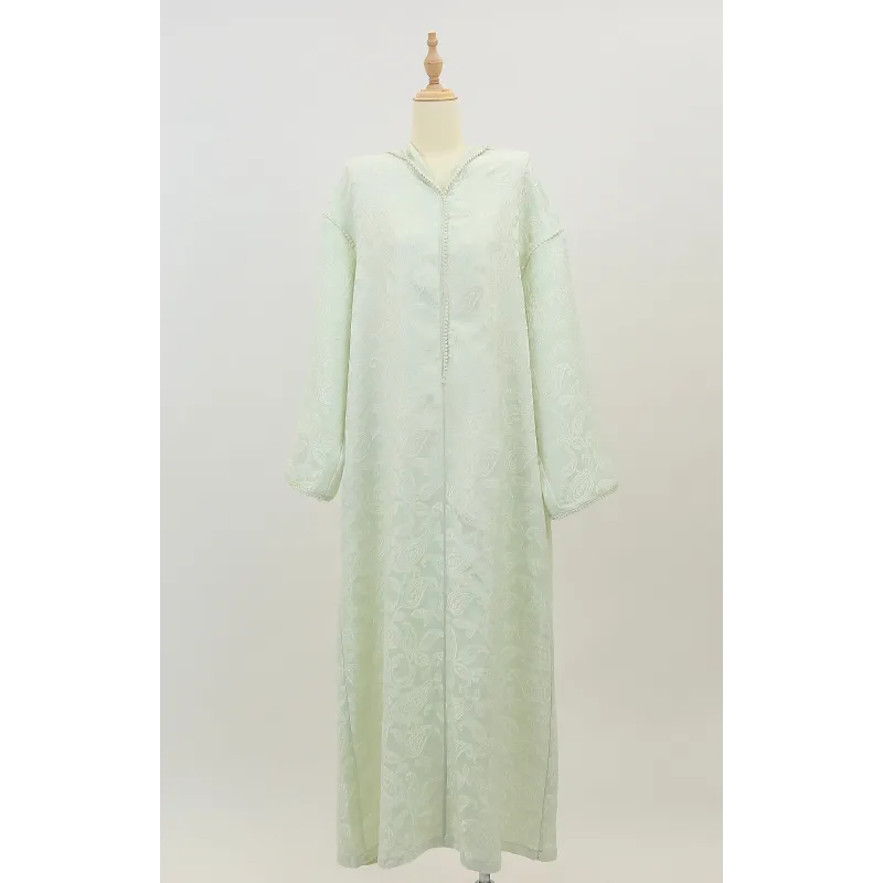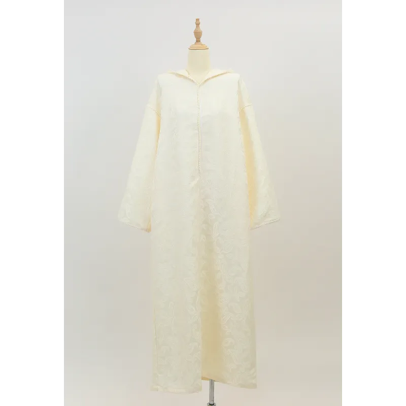 Mooie klassieke Jellaba met subtiele details die de elegantie en traditionele charme van deze klederdracht benadrukken. Deze Jellaba is vervaardigd uit een stijlvol, hoogwaardige stof met een brocant motief dat niet alleen visueel aantrekkelijk is, maar ook een verfijnde uitstraling biedt.