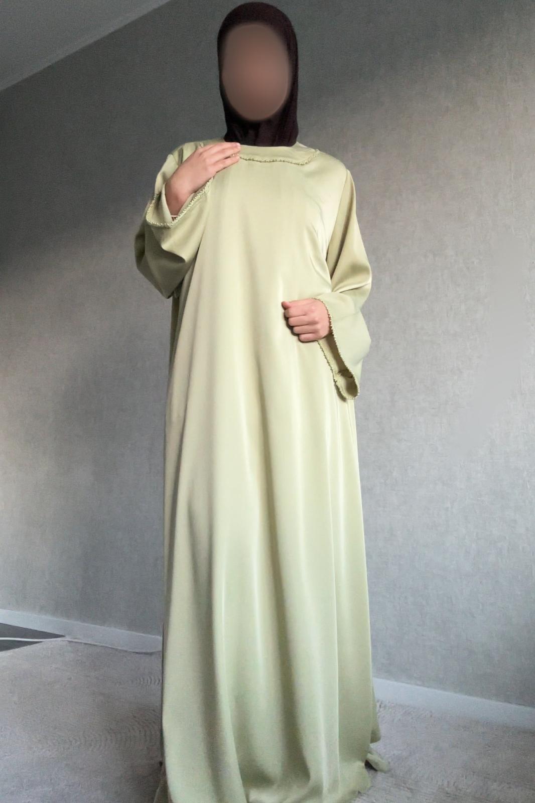 Deze prachtige dames abaya straalt eenvoud, elegantie en comfort uit. De jurk is uitgevoerd in een zachte groen tint en heeft een tijdloos, minimalistisch ontwerp dat perfect is voor zowel speciale gelegenheden als dagelijks gebruik.