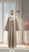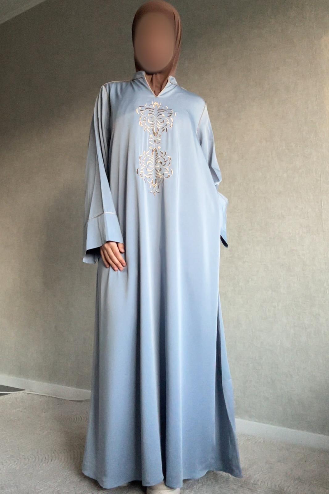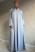 Deze stijlvolle dames abaya in mooie zachte kleuren combineert eenvoud met verfijnde details. Het subtiele borduursel op de borst geeft de jurk een elegante en luxe uitstraling, terwijl het minimalistische ontwerp zorgt voor een tijdloze look.