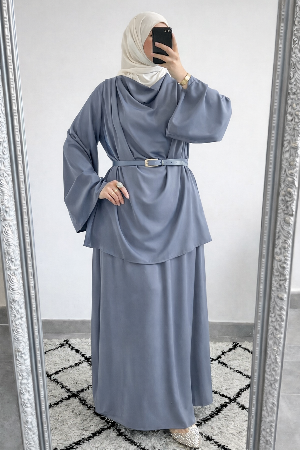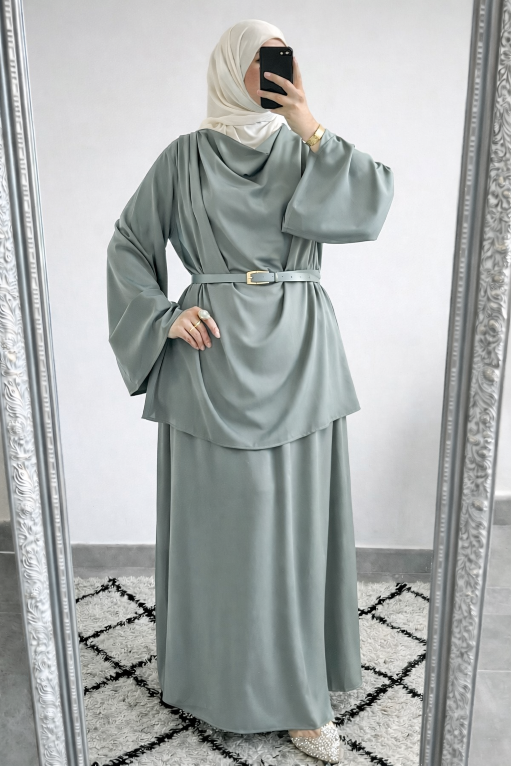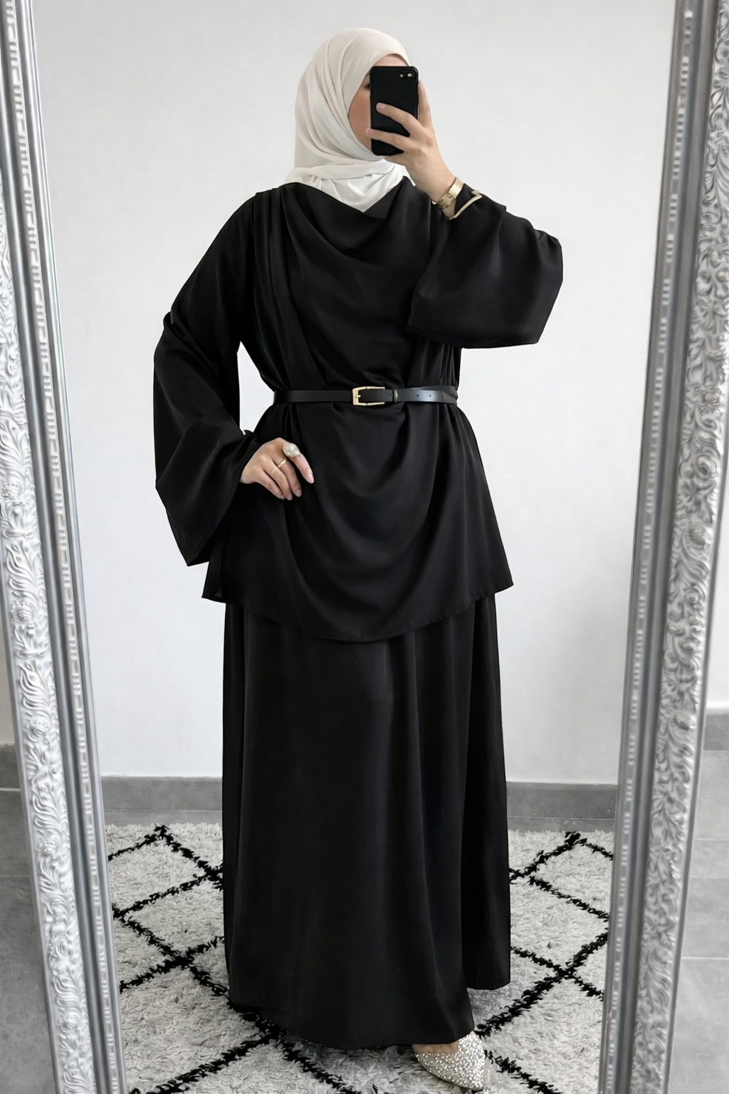 Deze set is ideaal voor feestelijke gelegenheden, eid-outfits, speciale diners of een stijlvolle dagelijkse look. Combineer met een neutrale tas en sieraden voor een verfijnde, tijdloze uitstraling.